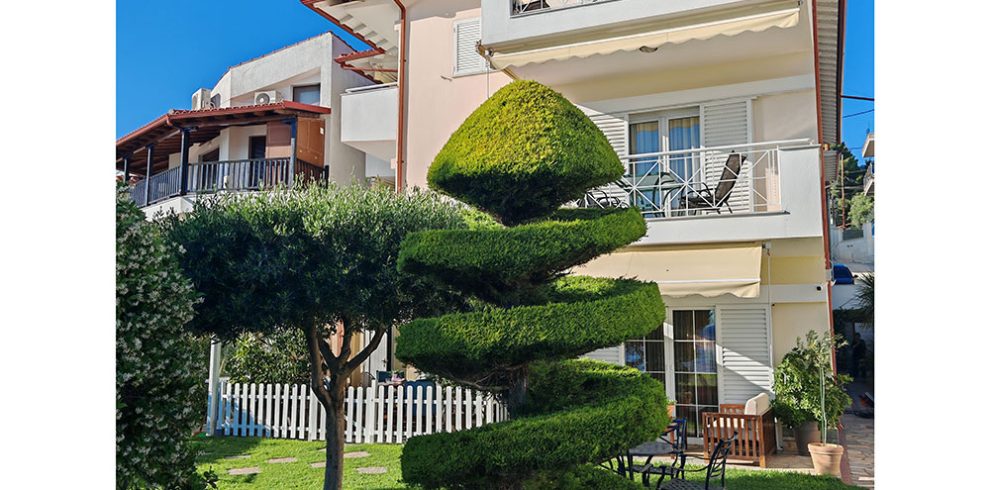 Nalazi se na samoj plaži Psakudije. Glavne prednosti ove kuće su prelepo dvorište sa puno zelenila i skoro pa privatna plaža sa ležaljkama i suncobranima...