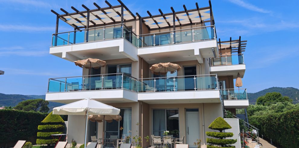 Nalazi se na 110m od plaže u novom delu Sartija. U ponudi su dvokrevetni studiji u niskom prizemlju i četvorokrevetni apartmani koji se nalaze u...