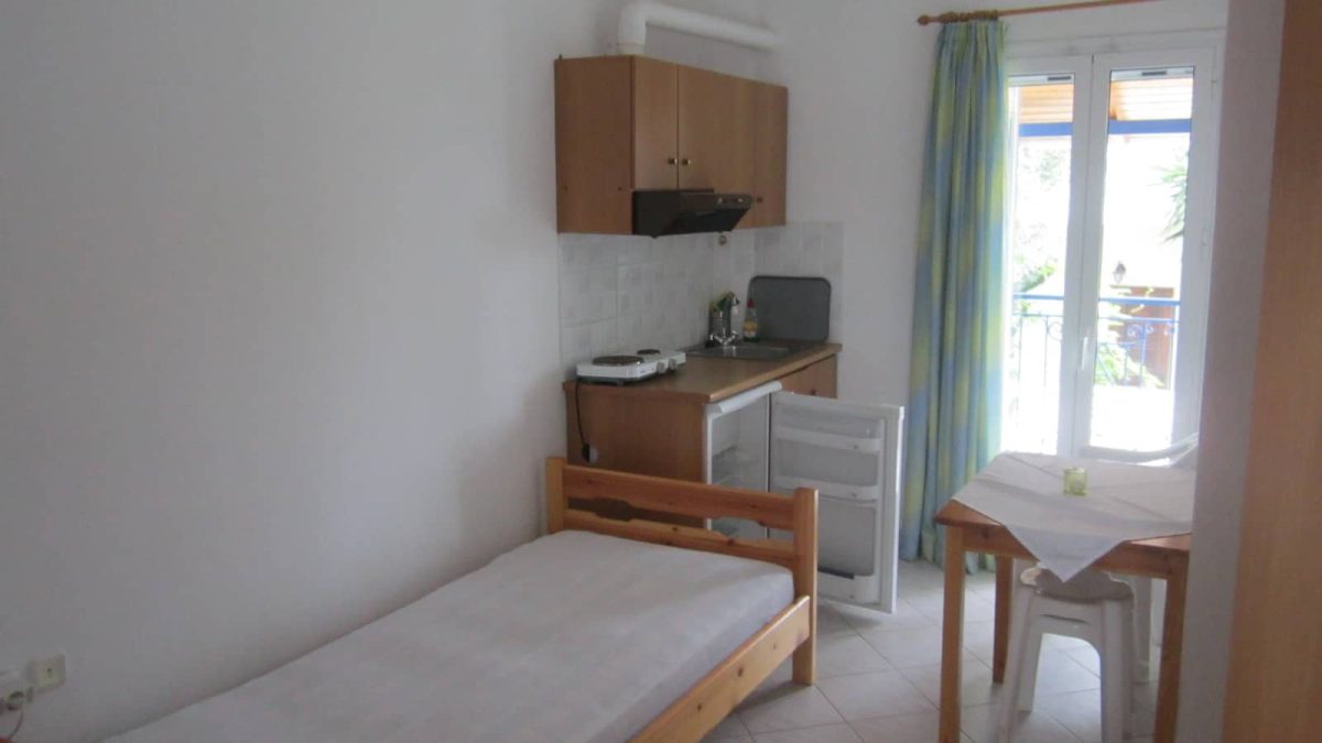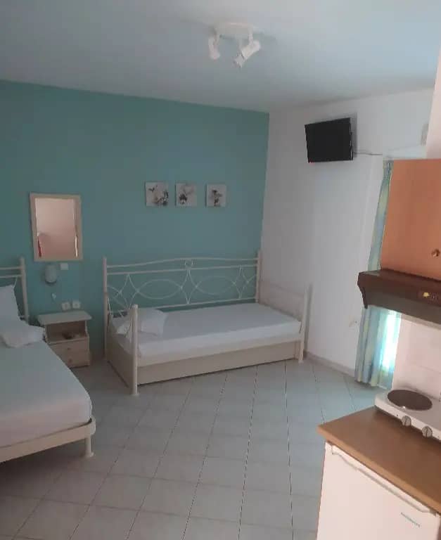 Opis: Vila je nedavno renovirana. Raspolaže dvokrevetnim studijima sa pomoćnim ležajem, kao i trokrevetnim sa pomoćnim. Svaka smeštajna jedinica ima kupatilo ( tuš/WC ), kompletno opremljenu kuhinju, TV, balkon, kao i klima uređaj čije korišćenje se doplaćuje na licu mesta 5 € po danu. U dvokrevetnim studijima sa pomoćnim ležajem nalazi se krevet manjih dimenzija koji može koristiti dete do 12 godina. Vila ima peškire, kao i besplatan Wi-Fi internet.