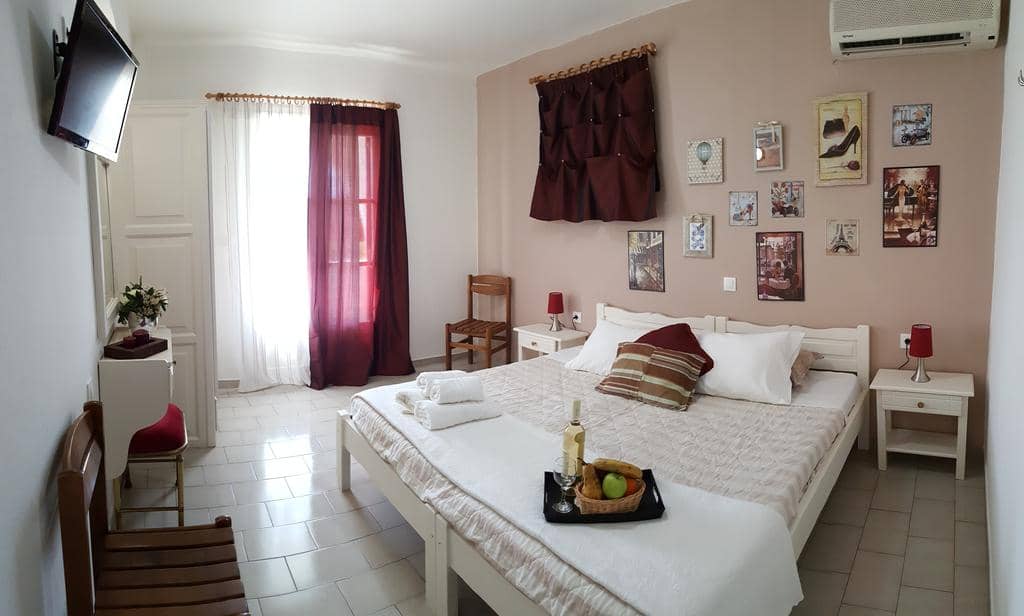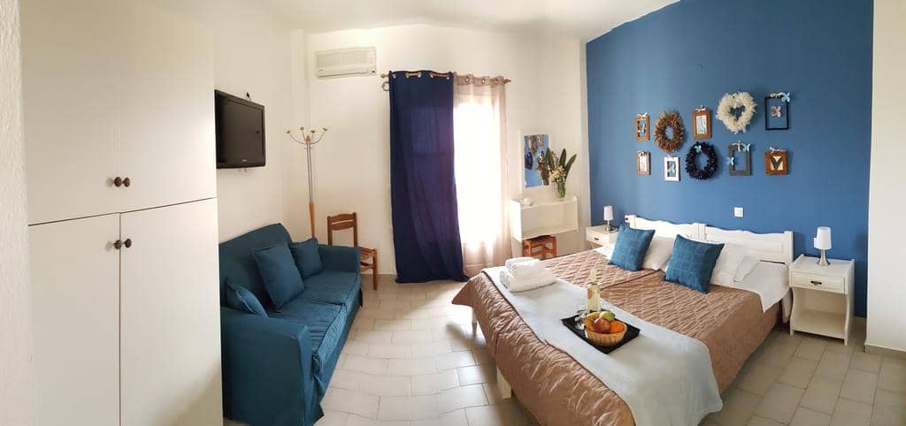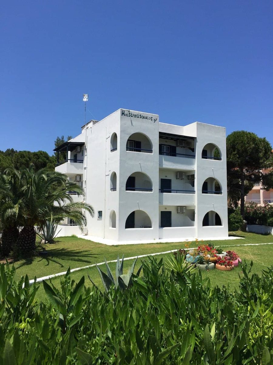 Opis: Studiji u vili Maistrali nalaze se u prizemlju, imaju kompletno opremljenu čajnu kuhinju u okviru sobe, kupatilo (tuš/WC), TV, terasu, kao i klima uređaj čije je koršćenje uključeno u cenu. U StudioS2+1 moguće je smestiti dve odrasle osobe i dete do 12god, a u Studio S2+2 moguce je smestiti dve odrasle osobe i dvoje dece do 12godina. Vila Maistrali ima peškire, besplatan Wi-Fi internet, kao i mogućnost sopstvenog parkinga. Vila je odlično pozicionirana, jer se oko nje nalazi nekoliko prodavnica, taverni i kafića, kao i nekoliko odličnih i poznatih plaža sa supotne strane ostrva, kao što su Bana, Krifi i Mantraki.