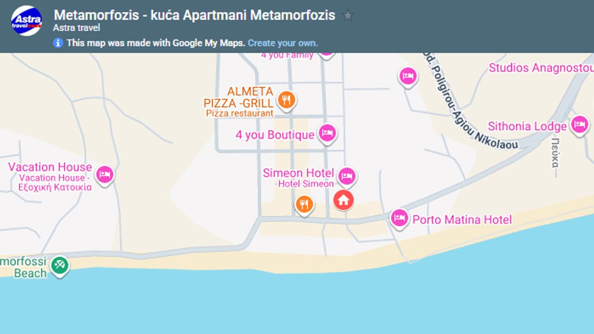 Apartmani Metamorfozis se nalaze u mirnom delu mesta preko puta poznatog hotela Simeon, na oko 150m od plaže. U ponudi su prostrani šestokrevetni duplexi od skoro 50m2 koji se nalaze u prizemlju. Kuća ima signal za bežični internet, a dupleksi imaju TV i klima uređaj čije je korišćenje uključeno u cenu. Sve kuhinje imaju rernu.
