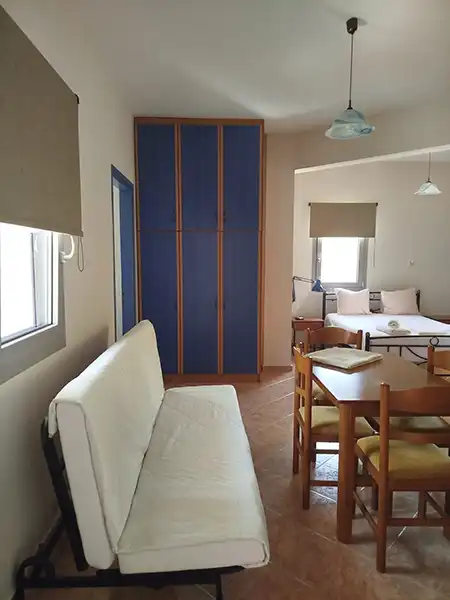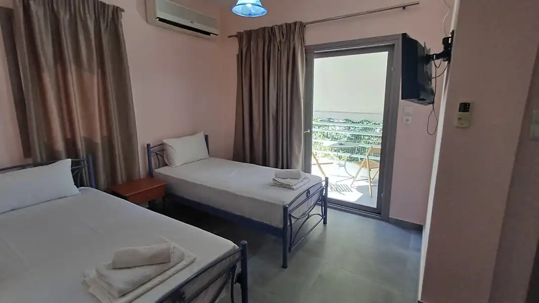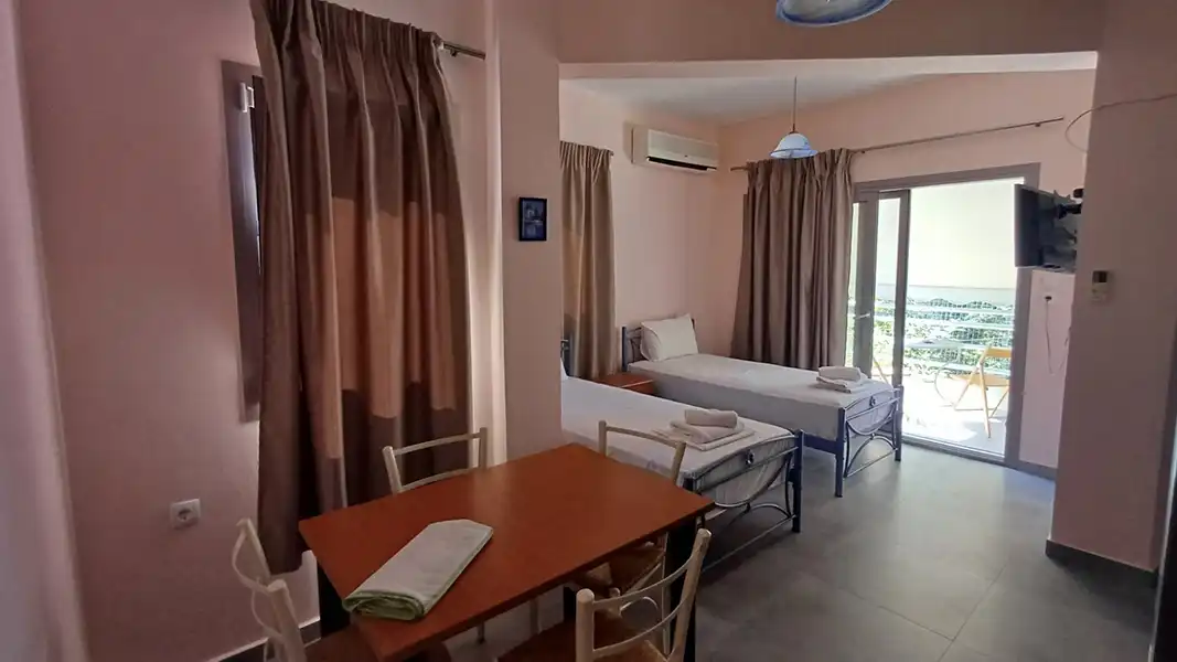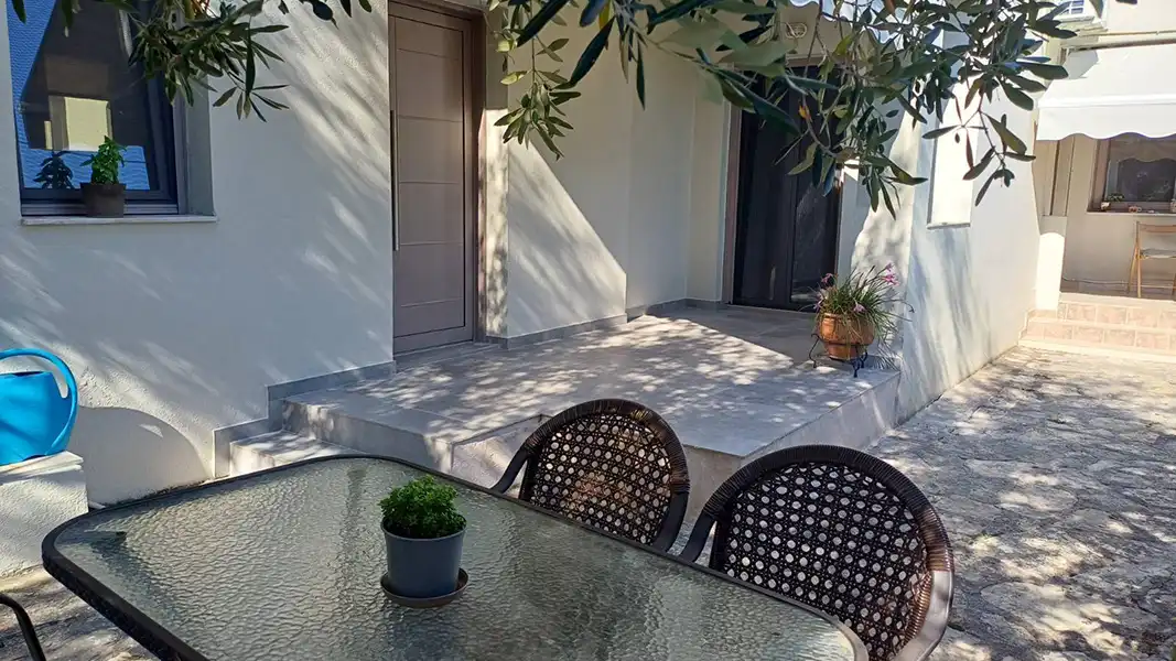 Lokacija: Vila Parthenia raspolaže četvorokrevetnim apartmanima , na uzdignutom prizemlju i prvom spratu . Vila je smeštena na idealnoj lokaciji, okružena zelenilom sa svih strana, u mirnom delu Sivote. Ima prostrano dvorište koje krasi mediteransko rastinje, garniture za sedenje i roštilj koji je stavljen na korišćenje svim našim gostima. Od mora i marine je udaljena 1000m, od centru mesta i šetališta uz more. Centar je okružen prodavnicama, supermarketima, restoranima i kafeterijama… Od najbliže plaže Zavia udaljena je 1000m. Vila poseduje besplatan wi-fi internet. SMEŠTAJ: apartmani 1/4 imaju francuski krevet za maksimalno dve odrasle osobe, jedan ili dva singl kreveta, za maksimalno jednu ili dve odrasle osobe i pomoćni krevet za decu ili odraslu osobu. Takođe raspolaže dečijim krevetićem (na upit, za dete do 3 godine). Sadrže kuhinju opremljenu osnovnim posuđem za pripremu laganih obroka (nije dozvoljena priprema ribe), twc, TV, klima uređaj (uz doplatu 5 eura dnevno) i terasu sa pogledom na dvorište.