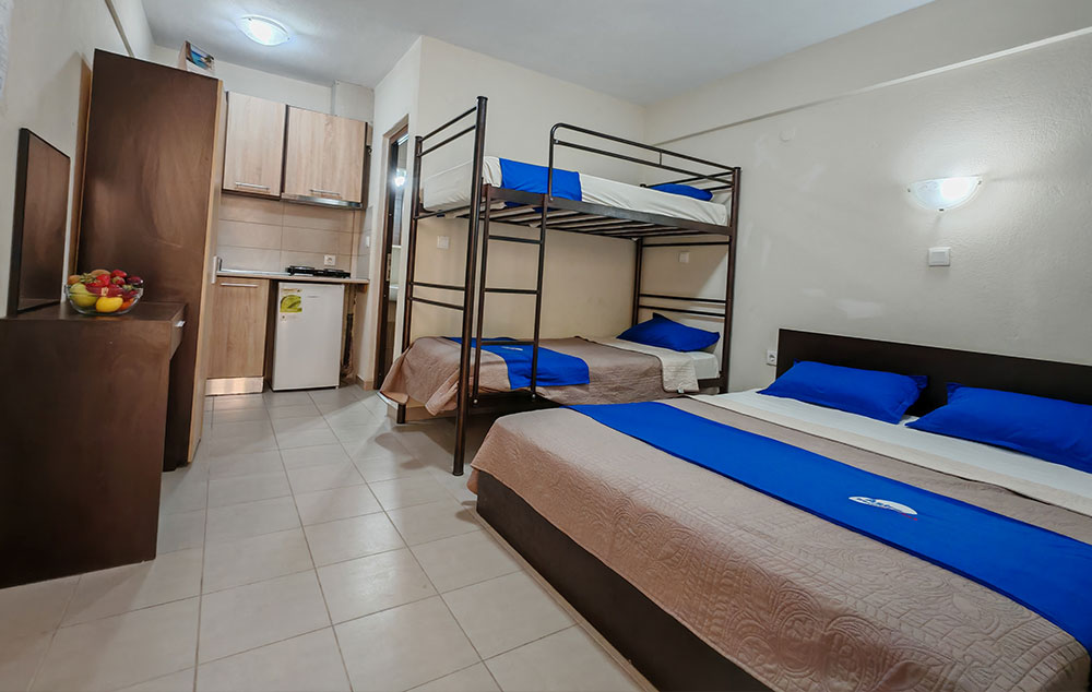 Svi studiji i apartmani imaju terasu, wc i tuš sa toplom i hladnom vodom, sto i stolice, orman, čajnu kuhinju sa frižiderom koja je opremljena prema broju osoba (tanjiri, čaše, šolje, escajg, šerpa, tiganj, džezva za kafu ). Promena posteljine je na pola smene, za smene duže od 8 noći. U većini objekata domaćini kuća na dan zamene posteljine dostavljaju čistu posteljinu koju gosti sami menjaju kao što i sami održavaju higijenu smeštajne jedinice tokom svog boravka. U pojedinim objektima, osoblje kuće ulazi u smeštajne jedinice i samostalno vrši zamenu posteljine. Pored standardne opreme, smeštajne jedinice mogu imati i određenu opremu koja ih izdvaja u odnosu na ostale smeštajne jedinice iz ponude. U cenovnicima se pored naziva određenih kuća nalaze brojevi.