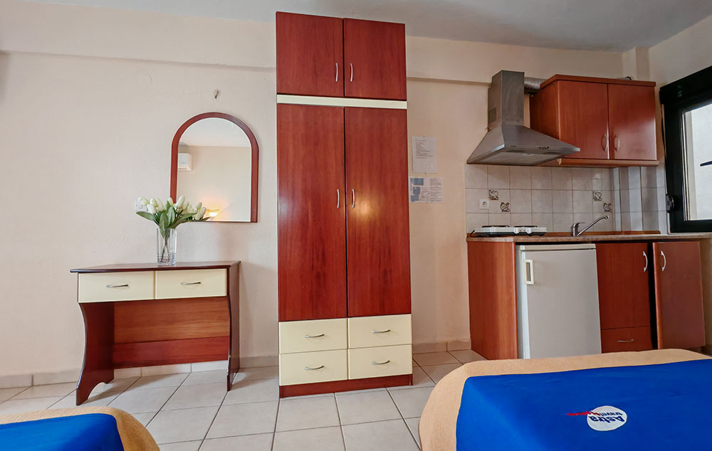 Na samo 70m od plaže u Sarti Beach-u, nalazi se kuća Ammolofos. Studiji za 2-4 osobe nalaze se u prizemlju, na prvom i drugom spratu. Kuća ima signal za besplatno korišćenje bežičnog interneta, a studiji imaju TV i klima uređaj čije je korišćenje uključeno u cenu. Postoje studiji sa pogledom na more, kao i studiji sa terasama bez posebnog pogleda koji imaju ulaz preko terase i zato su jeftiniji i cenovno izdvojeni.