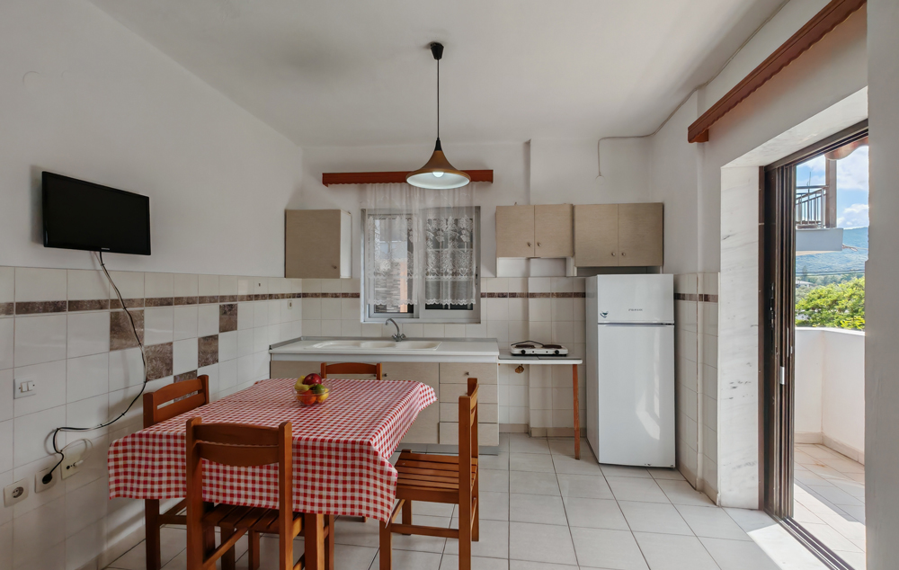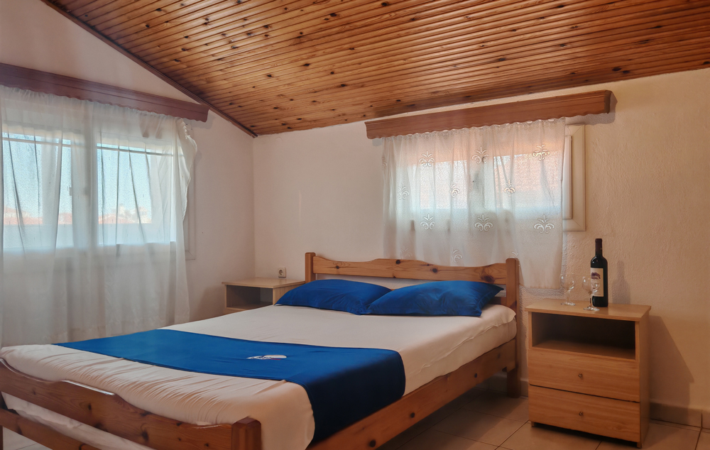 Nalazi se u novom delu Sartija na oko 110m od najlepšeg dela peščane plaže u Sartiju. Apartmani su za 2 do 5 osoba, a glavni kvalitet ove kuće jeste što je i smeštaj za dve osobe u strukturi apartmana sa odvojenom spavaćom sobom. Izuzetak je studio br. 4 koji je i cenovno odvojen. Kuća ima SAT TV, besplatan WiFi, klima uređaje čije se korišćenje doplaćuje.