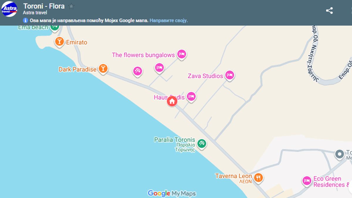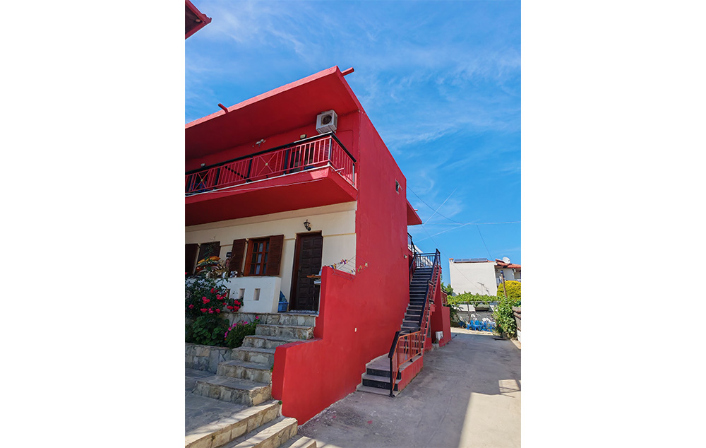 Nalazi se na 40m od mora, između kuće Ana (Sakis III) i kuće Fay (Sakis I). Studiji i apartmani se nalaze na prvom i drugom spratu. Kuća ima signal za besplatno korišćenje bežičnog interneta, a sve smeštajne jedinice imaju TV i klima uređaj čije je korišćenje uključeno u cenu. Kuća je renovirana 2025. godine. Domaćini kuće obezbeđuju korišćenje peškira uz depozit u iznosu od 10 evra.