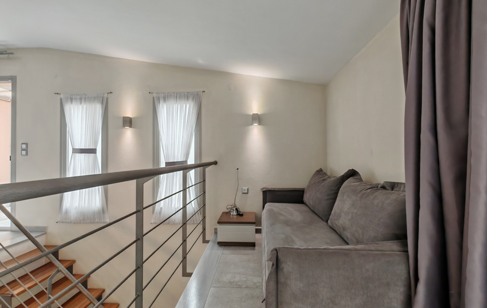 3.    MEZONETA – smeštajna jedinica u kući na dva nivoa koja se sastoji od jedne ili dve spavaće sobe sa po jednim ili više ležajeva, dnevnog boravka u kojem se nalaze kuhinjski elementi i krevet ili više kreveta, kupatilo i terasa. Drugi, viši nivo ili sprat, su najčešće povezani  stepenicama sa nižim nivoom.
