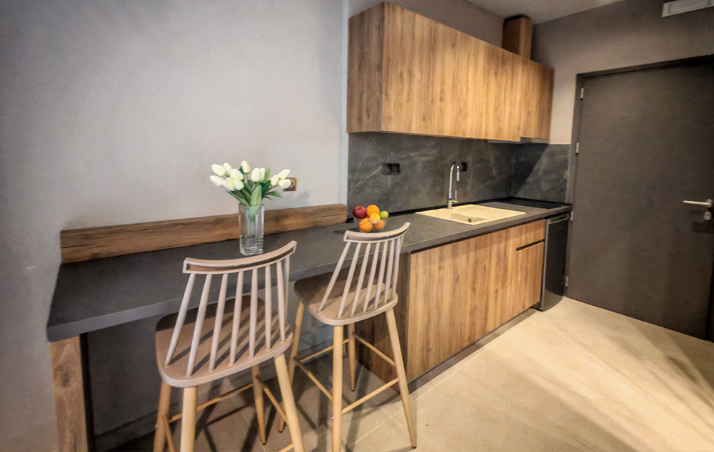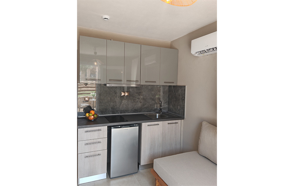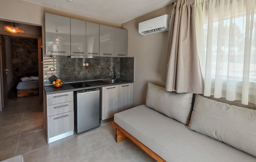 Nov objekat koji je svoje prve goste dočekao u maju 2025. godine. Trokrevetni studiji i četvorokrevetni apartmani se nalaze u prizemlju i niskom prizemlju. Lithos village je sastavno deo lithos villas Nikiti i nalazi se na samo 2km od centra Nikitija, na 1.5km od Lidla i Masoutisa i na manje od kilometar od plaže u nastavku mesta Nikiti i 3km od jedne od najlepših plaža Sitonije Agios Ioannis gde se nalazi i popularni hotel Ammoa. Studiji i apartmani imaju tv, klima uređaj čije je korišćenje uključeno u cenu kao signal za korišćenje besplatnog bežičnog interneta. Čišćenje kao i zamena posteljine su organizovana dva puta za boravke od 10 dana ili jednom za boravak od 7 dana. Gostima je na raspolaganju prostrano dvorište sa roštiljem, bazen za odrasle i dečiji bazen, igralište za decu i parking za automobile. Lithos village je sjajna baza za obilazak Sitonije iz pravca Nikitija u luksuznim apartmanima visoke kategorije. Studiji i apartmani u niskom prizemlju su u glavnoj zgradi, a oni u prizemlju su u manjem depadansu u neposrednoj blizini bazena.
