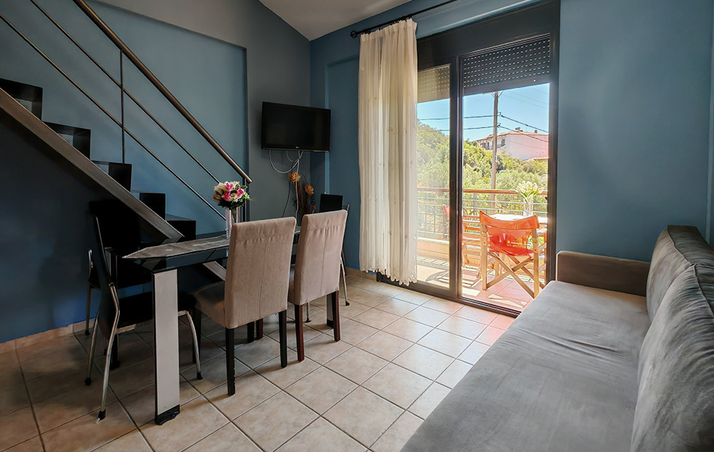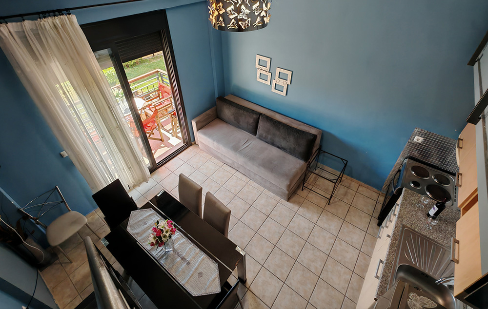 3.    MEZONETA – smeštajna jedinica u kući na dva nivoa koja se sastoji od jedne ili dve spavaće sobe sa po jednim ili više ležajeva, dnevnog boravka u kojem se nalaze kuhinjski elementi i krevet ili više kreveta, kupatilo i terasa. Drugi, viši nivo ili sprat, su najčešće povezani  stepenicama sa nižim nivoom.
