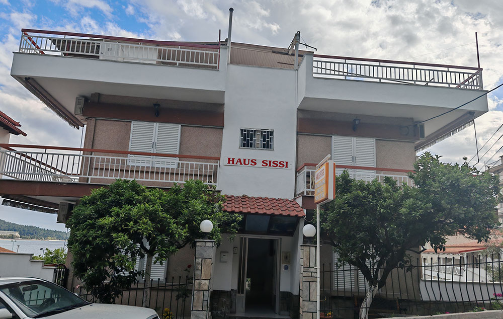 Kuća Sissy se nalazi na 150m od mora, iznad fudbalskog stadiona, a na 300m od gradske plaže u neposrednoj blizini dobro opremljenog supermarketa kao i taverni. U ponudi su studiji za 2 do 3 osobe kao i apartman za 5 osoba. Kuća ima signal za besplatno korišćenje bežičnog interneta, a smeštajne jedinice imaju TV i klima uređaj čije se korišćenje doplaćuje. Kuća ima manje dvorište. Određeni studiji imaju i pogled na more.