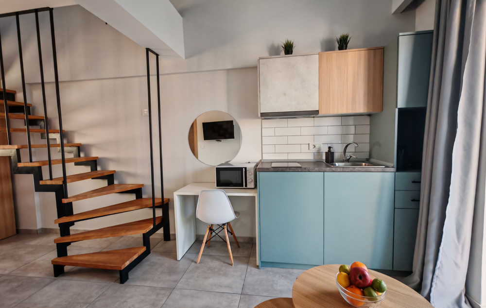 5. APARTMAN ILI STUDIO SA GALERIJOM – smeštajna jedinica u kući koja se razlikuje od gore opisanih, po galeriji, najčešće iznad kuhinjskog dela, povezana sa glavnim nivoom najčešće metalnim ili drvenim, uskim, strmim stepenicama. Između galerija i donjeg dela ne postoje vrata, kao što je to slučaj kod mezonete.