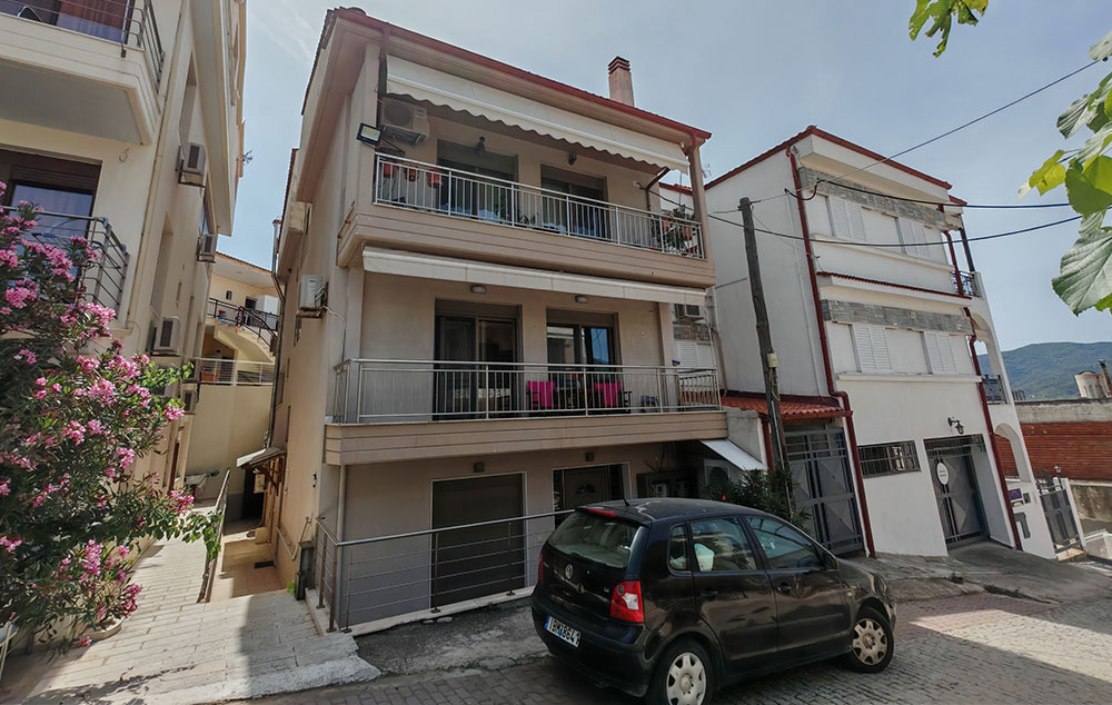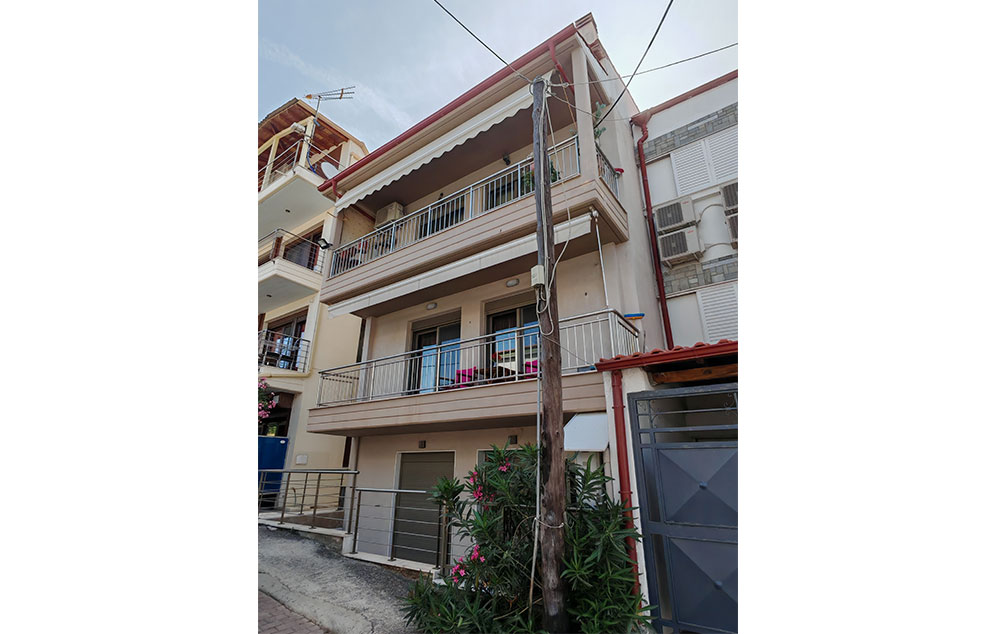 Nalazi se na oko 140m od mora, na uzvišenju pored crkve. Osim gradske plaže, u blizini je i jedna manja uvala sa stenama i peskom. Na prvom spratu nalazi se nov moderan, luksuzan duplex. Prostrana odlično opremljena kuhinja (šporet, mikrotalasna, mašina za sudove, kuvalo) je sastavni deo prostranog dnevnog boravka gde se nalazi trosed na rasklapanje za 2 osobe. Jedna spavaća soba ima francuski krevet i druga spavaća soba ima klasičan krevet sa još jednim fioka klasičnim krevetom. Jedna terasa gleda ka mirnoj ulici, druga prostrana terasa gleda između zgrada. Kuća ima signal za besplatan bežični internet, SAT TV i klima uređaje (dnevna soba i jedna spavaća soba) čije je korišćenje uključeno u cenu. Gostima je na raspolaganju usluga pranja veša koja se može dogovoriti sa domaćinima kuće. Prilikom zamene posteljine i peškira organizovano je čišćenje duplexa.