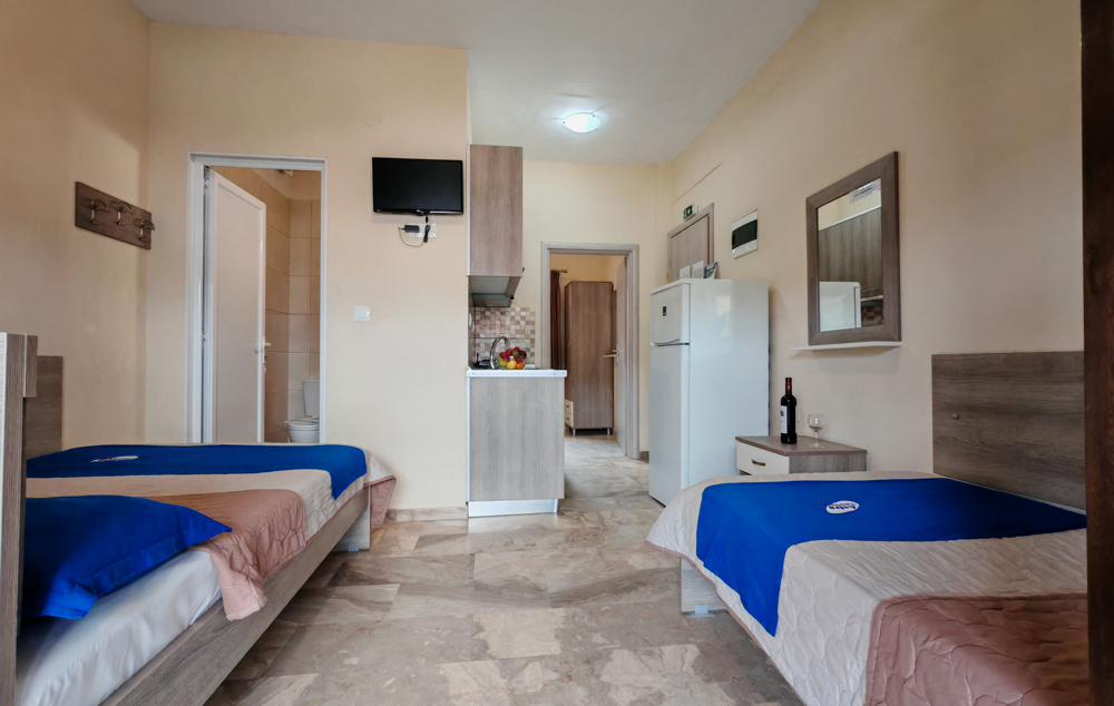 1. STUDIO – smeštajna jedinica u kući, bez predsoblja, u kojoj se u istom prostoru nalazi deo sa kuhinjskim elementima sa osnovnim priborom za jelo za odgovarajući broj osoba (prema broju standardnih ležajeva), krevet ili više kreveta, orman, zasebno kupatilo i terasa.