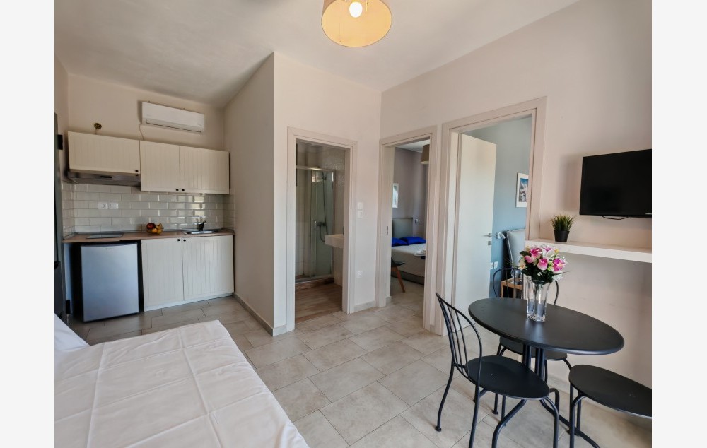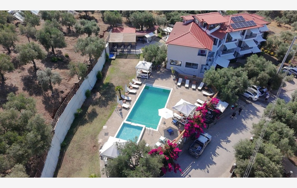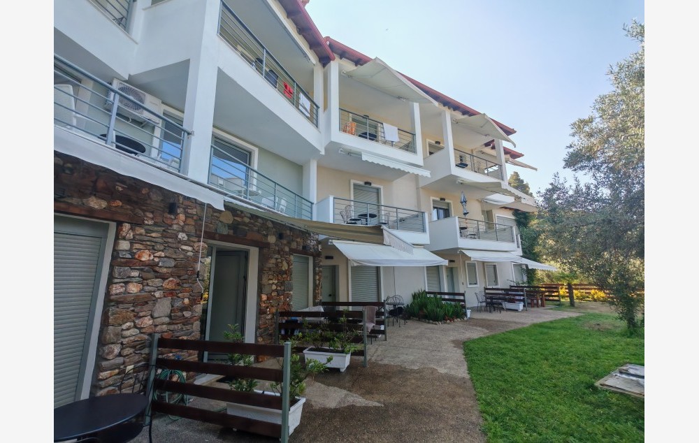 Nalazi se u zalivu Simonitiko na 11km od Neos Marmarasa, na oko 340m od prelepe plaže. Studiji i duplexi su u prizemlju, na prvom, drugom i trećem spratu. Kuća ima SAT TV, klima uređaje uz doplatu, signal za besplatno korišćenje bežičnog interneta, kao i čišćenje na pola smene prilikom zamene posteljine. Pravi izbor za kvalitetan odmor zbog mira, bazena i parkinga.