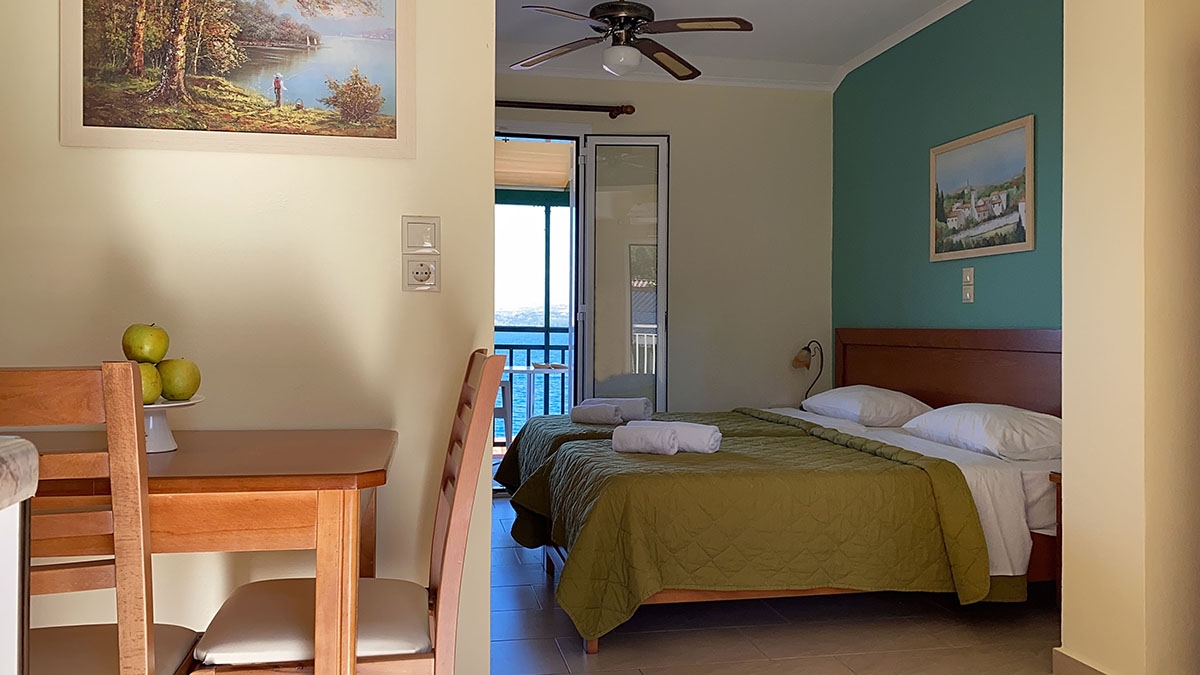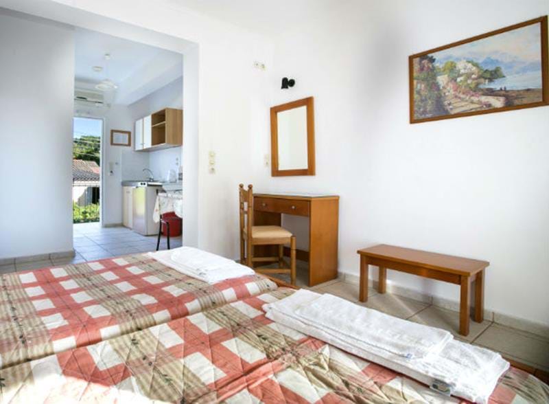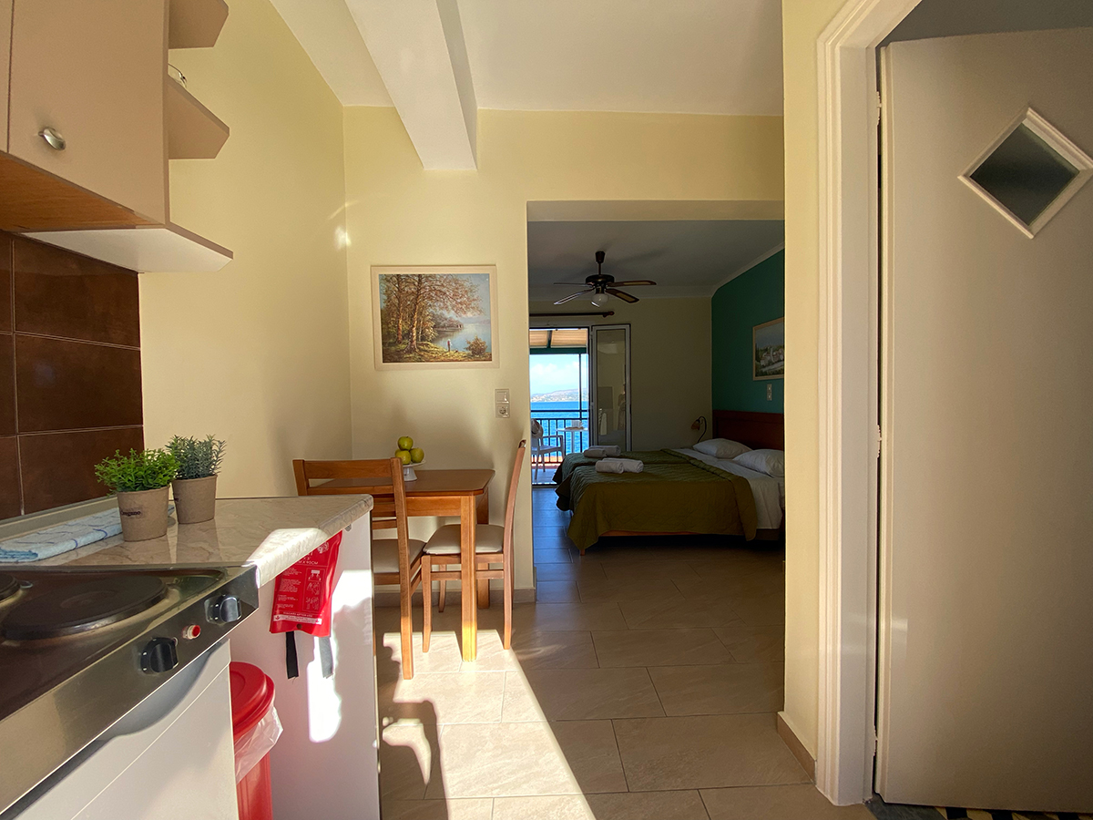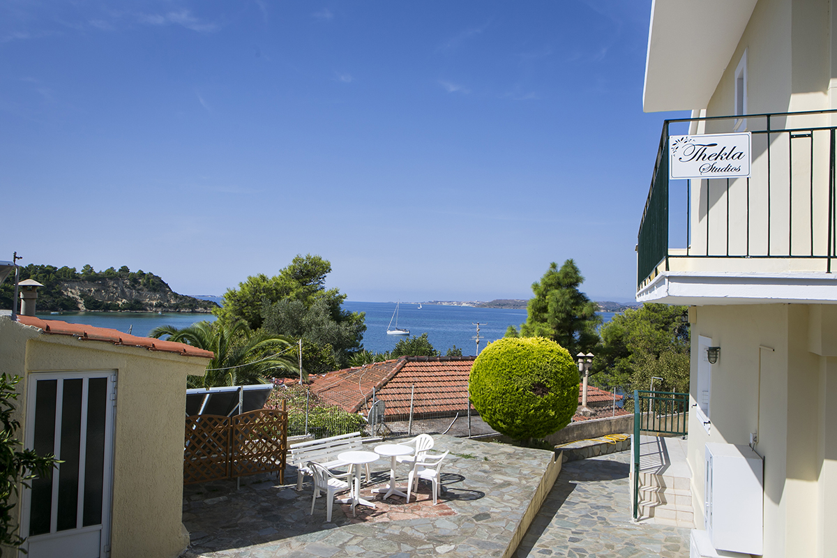 VILA THEKLA STUDIOS – Izbor prelepih plaža čeka goste u studijima Thekla Studios u Lassiju na Kefaloniji. U mirnom okruženju, nedaleko od glavnog puta i u blizini brojnih gradskih taverni, barova i prodavnica, studiji su udaljeni 50m od najbliže peščane / šljunkovite plaže. Zapanjujući pogled na more, posebno u svetlu veličanstvenih zalazaka sunca, dodaje romantičnu i opuštajuću atmosferu popularnosti Lassija kao destinacije. Objekat poseduje studije u prizemlju i na spratu. Studiji u prizemlju imaju terasu sa više svežeg vazduha – savršeno za odmor na grčkom ostrvu!