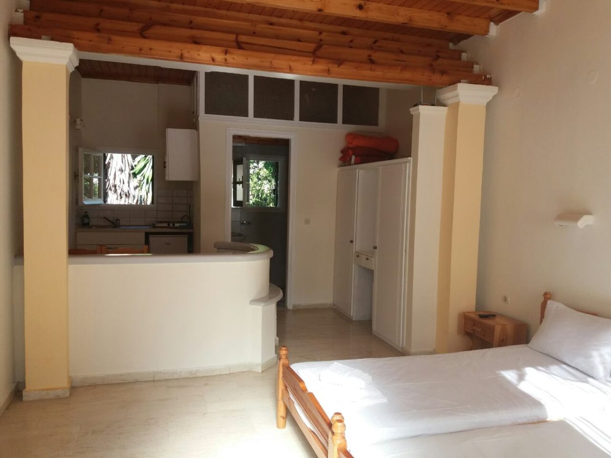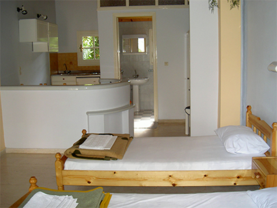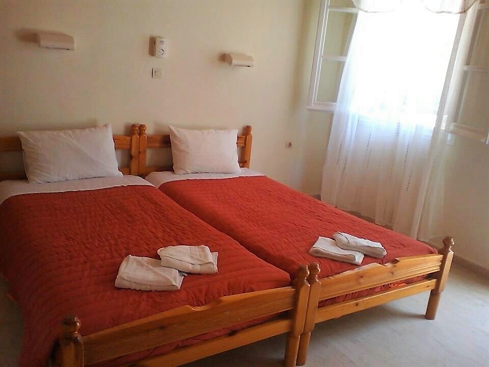 1/2 STD = Sadrži jednu spavaću sobu sa dva singl ležaja i jednim dodatnim (pomoćnim) ležajem koji se ubacuje po potrebi, čajnom kuhinjom (frižider, štednjak sa dve ringle i posuđe za odgovarajući broj osoba), kupatilom sa tuš kadicom TWC.*Grčki standard za singl krevet je 75x185cm, za francuski krevet 120x185cm, za pomoćni ležaj 65x175cm
