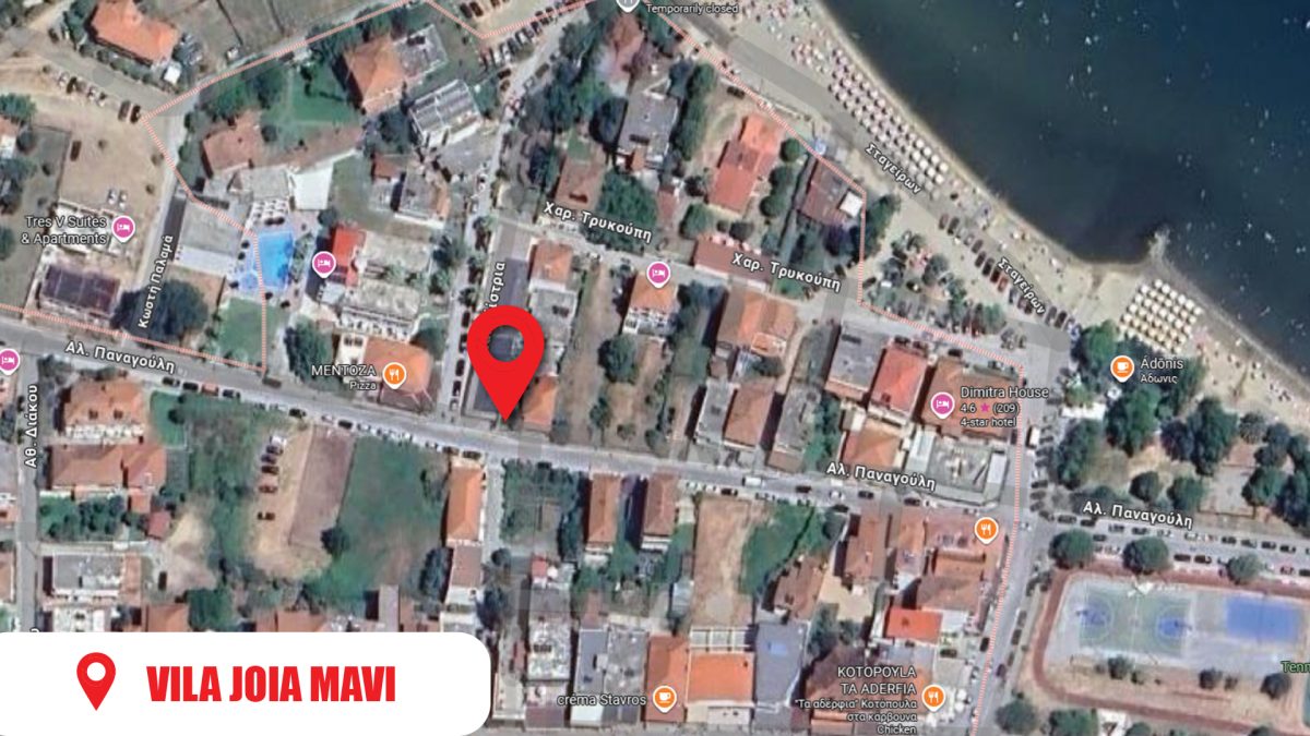 Vila Joia Mavi je noviji objekat izgrađen 2023.godine. Nalazi se na 250 metara udaljenosti od plaže u Stavrosu. Vila poseduje komforne i moderno opremljene mezonete za 2, 3 i 4 osobe.Sve smeštajne jedinice imaju kompletno opremljenu čajnu kuhinju, TWC, TV, klima uređaj i terasu.Korišćenje klima uređaja se dodatno naplaćuje na licu mesta 7 eura dnevno (nije obavezno). Gostima je na raspolaganju besplatan wireless internet. Posteljina se menja svakih 5 dana.