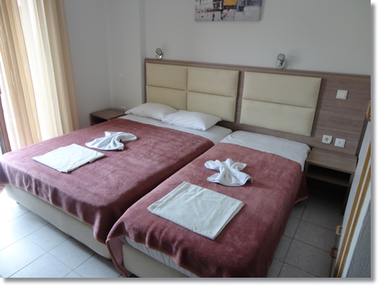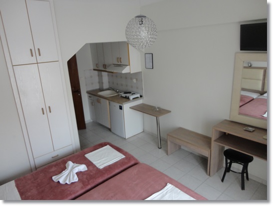 Dvokrevetni studiji imaju dva singl ležaja a trokrevetni studiji imaju francuski i singl ležaj. Promena posteljine vrši se na svakih pet dana. U blizini vile nalaze se brojne prodavnice, restorani i taverne. Preko puta je vila PAGIDAS, u kojoj se nalazi naša predstavnička agencija.