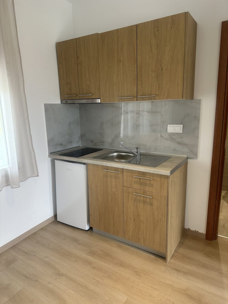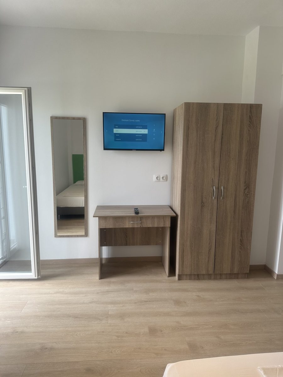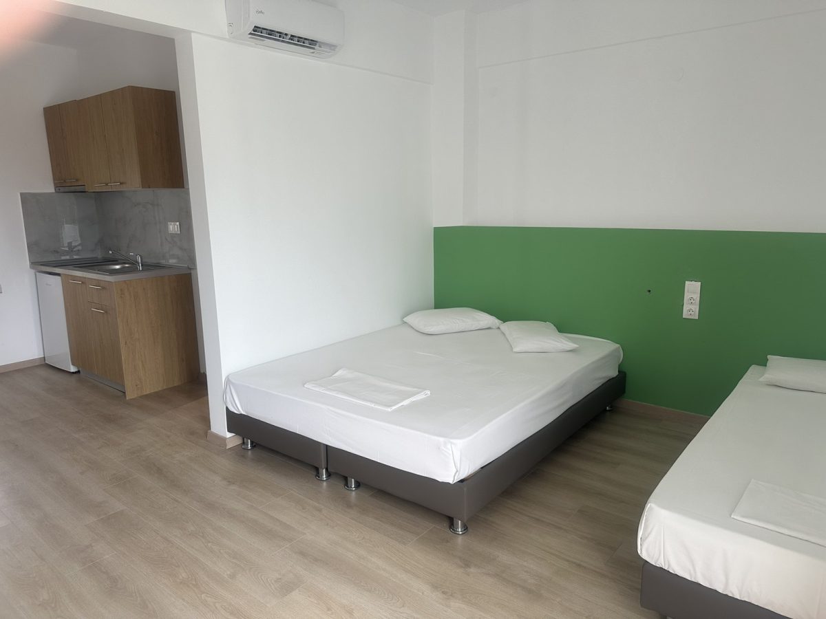 Svaki studio ima čajnu kuhinju (osnovno posuđe, frižider, rešo sa dve ringle), TWC, TV, klima uređaj i terasu. Trokrevetni studiji imaju francuski ležaj i klasičan ležaj ili 3 klasična ležaja. Korišćenje klima uredjaja  je uključeno u cenu u periodu 10. juli – 30. avgust. Van ovog perioda klima se doplaćuje 7 € po danu. Gostima je na raspolaganju WI-FI internet ( agencija nije odgovorna za kvalitet i brzinu ).