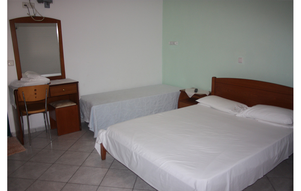 Opis: Lepi, prostrani, dobro opremljeni studiji nalaze se na drugom spratu i imaju divan pogled na more ili dvorište sa bočnim pogledom na more. Dvokrevetni + 1 studio se sastoji od dela sa kuhinjom, francuskim ležajem, ima fotelju na otvaranje, kupatila i terase sa garniturom za sedenje. Veličina studija je cca 18 kvm + terasa. Četvorokrevetni + 1 studio se sastoji od dela sa kuhinjom, dela u kojem je francuski ležaj i manjim dvosedom na otvaranje na kojem može spavati odrasla osba, galerije sa nižim, kosim krovom na kojoj je madrac širine manjeg francuskog ležaja, kupatila i terase sa garniturom za sedenje i pogledom na more. Četvorokrevetni + 1 veći studio umesto dvoseda ima standardni ležaj i nešto je veći od prethodno opisanog. Veličina studija je cca 23 kvm, odnosno cca 25 kvm + terasa sa garniturom za sedenje i pogledom na more. Trokrevetni +1 i trokrevetni + 2 apartman u prizemlju u koji se ulazi kroz terasu, ima pogled na more i predstavlja pravi izbor za porodice sa malom decom, jer pored sopstvene terase, ima na raspolaganju i dvorište/vrt. Sastoji se od ulazne sobe u kojoj se nalazi kuhinja (veliki frižider sa zamrzivačem i malim šporetom sa rernom), mali sto za ručavanje, standardni ležaj (sofa) i pomoćni na izvlačenje (skoro kao pravi), spavaće sobe sa francuskim ležajem i foteljom na otvaranje (za dete do 12 godina), kupatila sa fenom (ulaz iz spavaće sobe) i terase sa garniturom za sedenje. Spavaća soba nema prozor (osim malog koji se otvara na ulazni hodnik ka spratovima). Veličina apartmana je cca 28 kvm + terasa. Sedmokrevetni + 1 duplex apartman, jedini na prvom spratu, veličine je cca 65 kvm + terasa cca 20 kvm sa garniturom za sedenje i pogledom na more. Sastoji se od dnevnog borvka sa standardnim ležajem i sofom na rasklapanje, odlično opremljene kuhinje (šporet i veliki frižider sa zamrzivačem) sa standardnim ležajem, dve spavaće sobe (dva standardna ležaja i manji francuski + standardni) i kupatila. Petokrevetni i šestokrevetni duplex apartman se razlikuju samo po broju ležajeva u odnosu na prethodno opisani. Studiji i apartman su opremljeni klima uredjajem (uz doplatu na licu mesta (opcija) 7 eura, osim dupleks apartmana na prvom spratu 10 eura), TV-om, wi – fi Internetom i jednom zajedničkom veš mašinom (uz doplatu na licu mesta). Vila Papa Eleftheria je B + kategorije, ima peškire i mogućnost parkinga na ulici pored plaže.