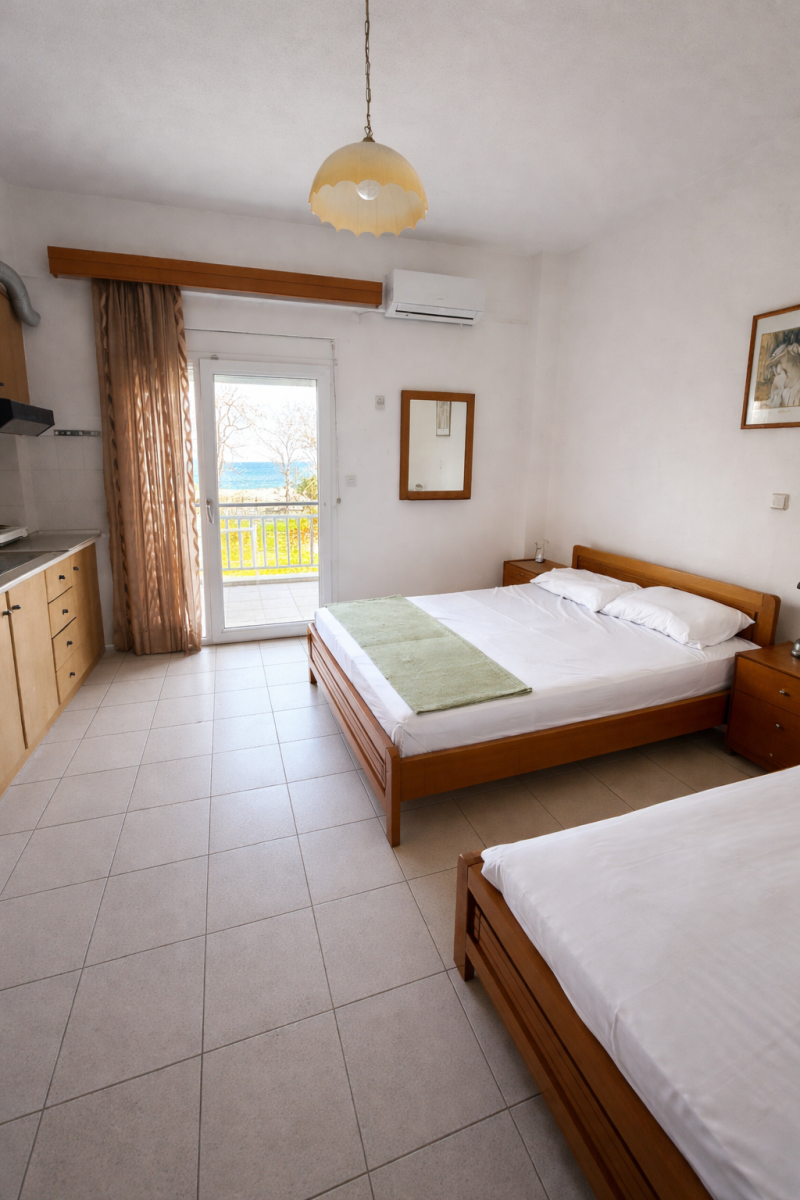 1/3 apartman: u jednoj prostoriji su 1 francuski ležaj i 1 standardni ležaj, u drugoj prostoriji je čajna kuhinja